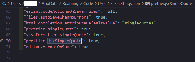 4. 완성! 이제 저장하면 tsx 파일의 quote 들 모두 자동으로 single quote으로 fomatting 된다