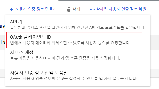 1. 다시 처음에 시도했던 oauth client id 발급 받자