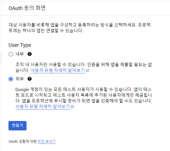 아 동의 화면이 없어서 oauth client id 발급이 어렵다고 한다...