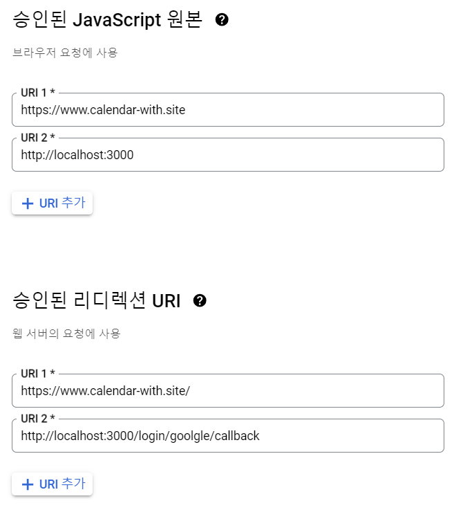 - 승인된 redirection uri에 액세스 토큰 발급 후, 연결할 내 페이지 정보를 넣어주어야 한다.