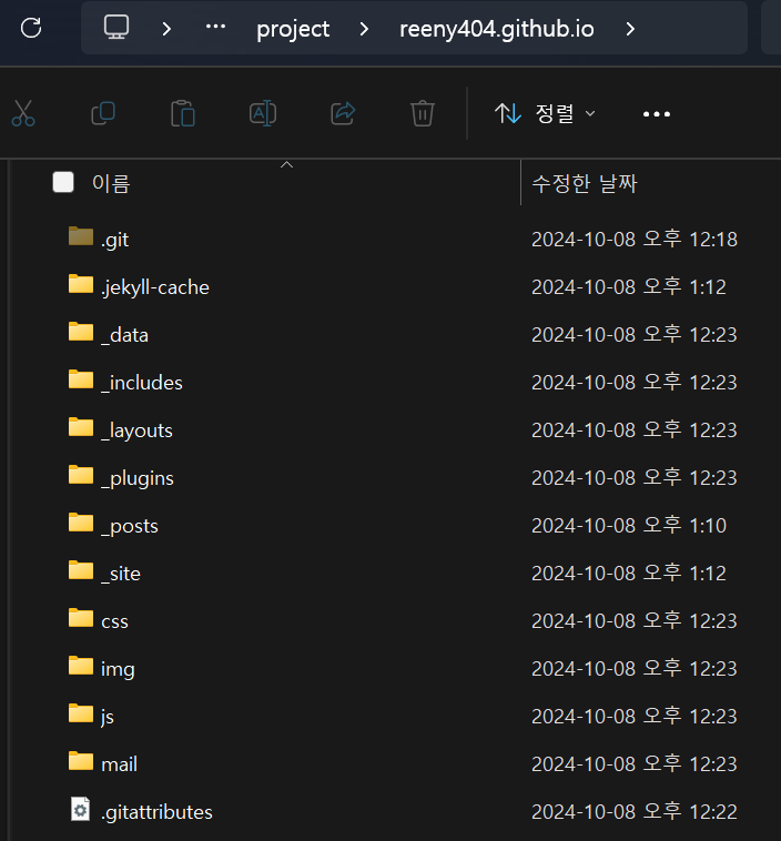 잘 적용되었다면 본인 github blog 주소 (ex. https://reeny404.github.io/)로 접속했을 때 테스트했던 화면이 나오는 것을 확인할 수 있다.
