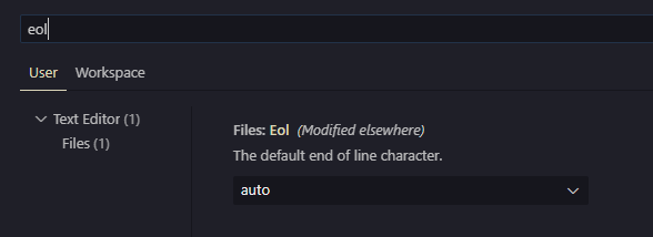 2. vscode setting eol : auto 로 변경