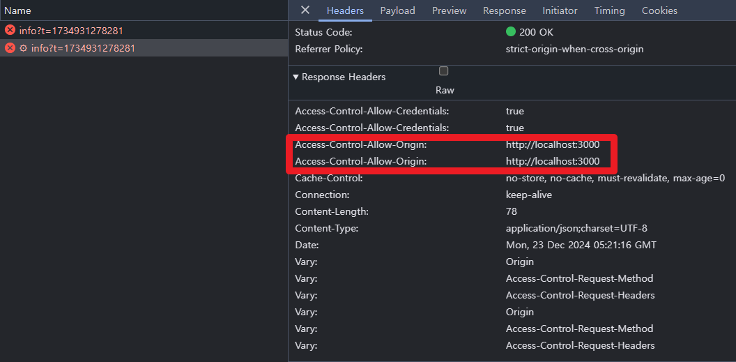 a. SockJs가 CORS 설정을 response header 에 추가해 응답을 내리면