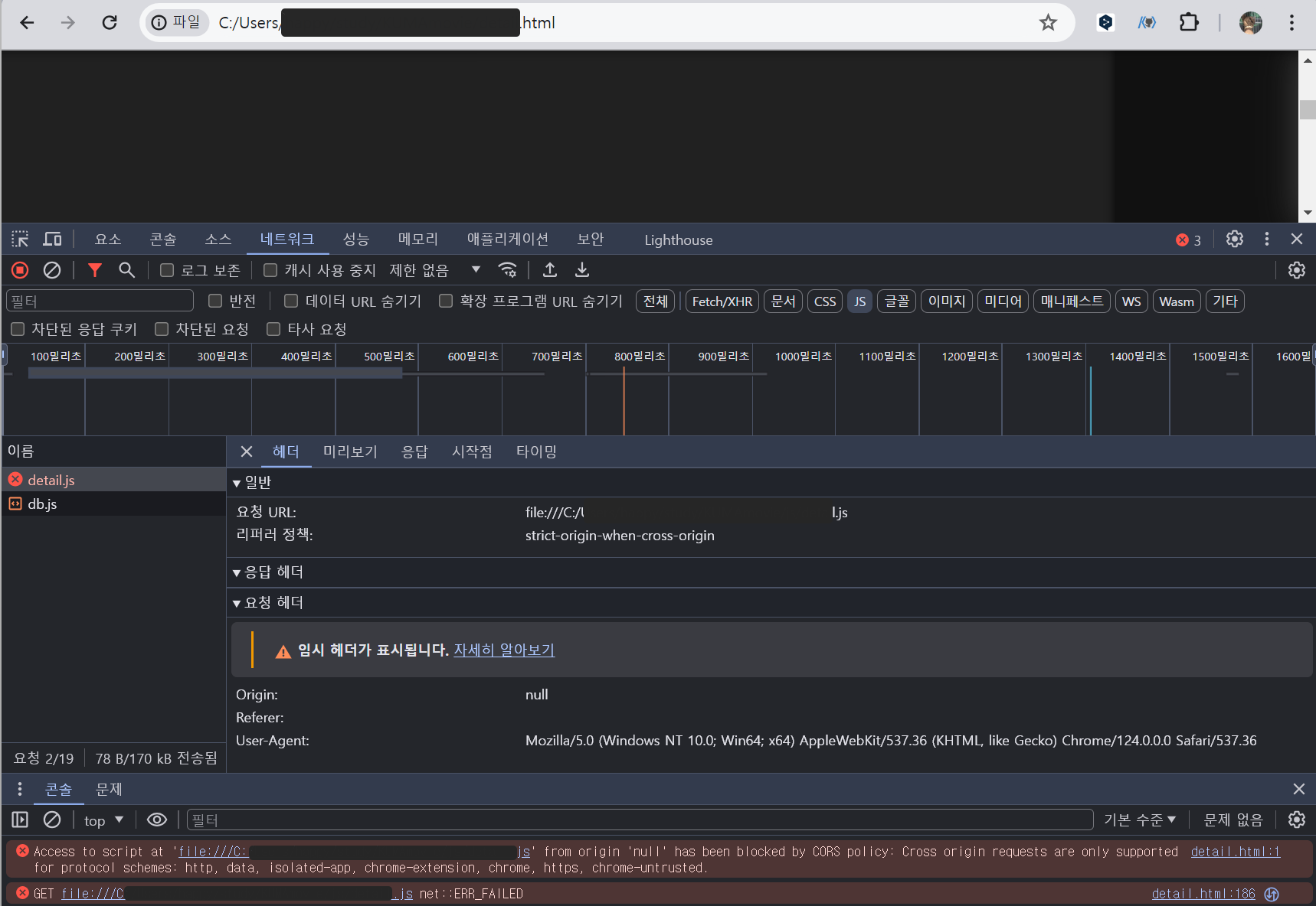 Access to script at 'file:///C:/Users/블라블라블라/파일명.js' from origin 'null' has been blocked by CORS policy: Cross origin requests are only supported for protocol schemes: http, data, isolated-app, chrome-extension, chrome, https, chrome-untrusted.