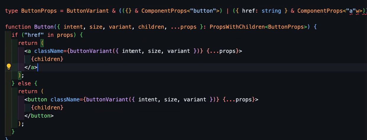 type ButtonProps = {} & ButtonVariant & ComponentProps<"button">;