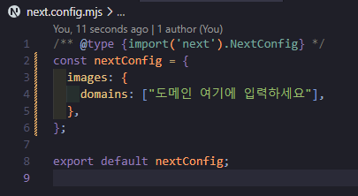 Error: Invalid src prop (이미지 URL) on `next/image`, hostname "도메인" is not configured under images in your `next.config.js` See more info: https://nextjs.org/docs/messages/next-image-unconfigured-host