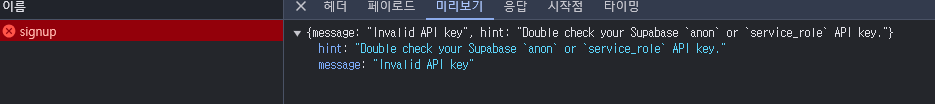 [supabase] invalid API key 본문