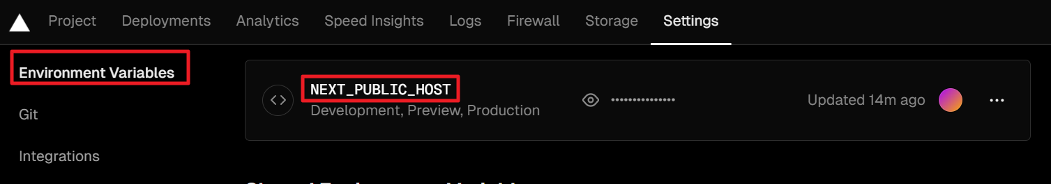 : vercel의 프로젝트 셋팅 메뉴의 하위에 환경변수를 설정하는 부분이 있다.